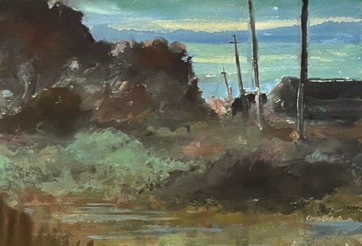 Watercolor, 12″ x 16″; framed 17.75″ x 21.75″